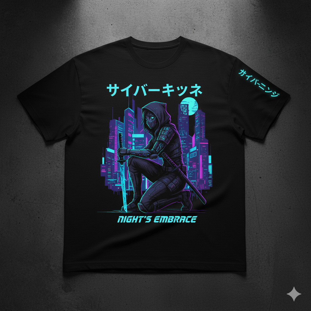 Esta camiseta es ideal para aquellos que aprecian la introspección, el misterio y la estética cyberpunk más profunda. Perfecta para los soñadores nocturnos y los estrategas silenciosos, "Night's Embrace" ofrece una pieza de arte vestible que invita a la reflexión. Confeccionada con materiales de primera calidad para un confort duradero, es una adición esencial a la colección de cualquier aficionado al género.